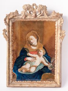 dipinto ad olio su vetro, 30 x 23 cm prima metĂ XX secolo in cornice non coeva in legno intagliato e dorato. [..]