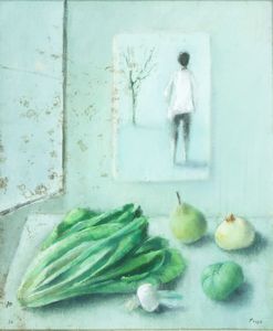 Olio su tela, 60 x 80 cm 1981 Firmato in alto a destra: Pucciarelli; firmato, datato e titolato al retro: Pucciarelli, [..]