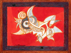 Tecnica mista su tavoletta, 24 x 32 cm Firmato in basso a sinistra: Mastroianni. Cornice incisa dall'artista