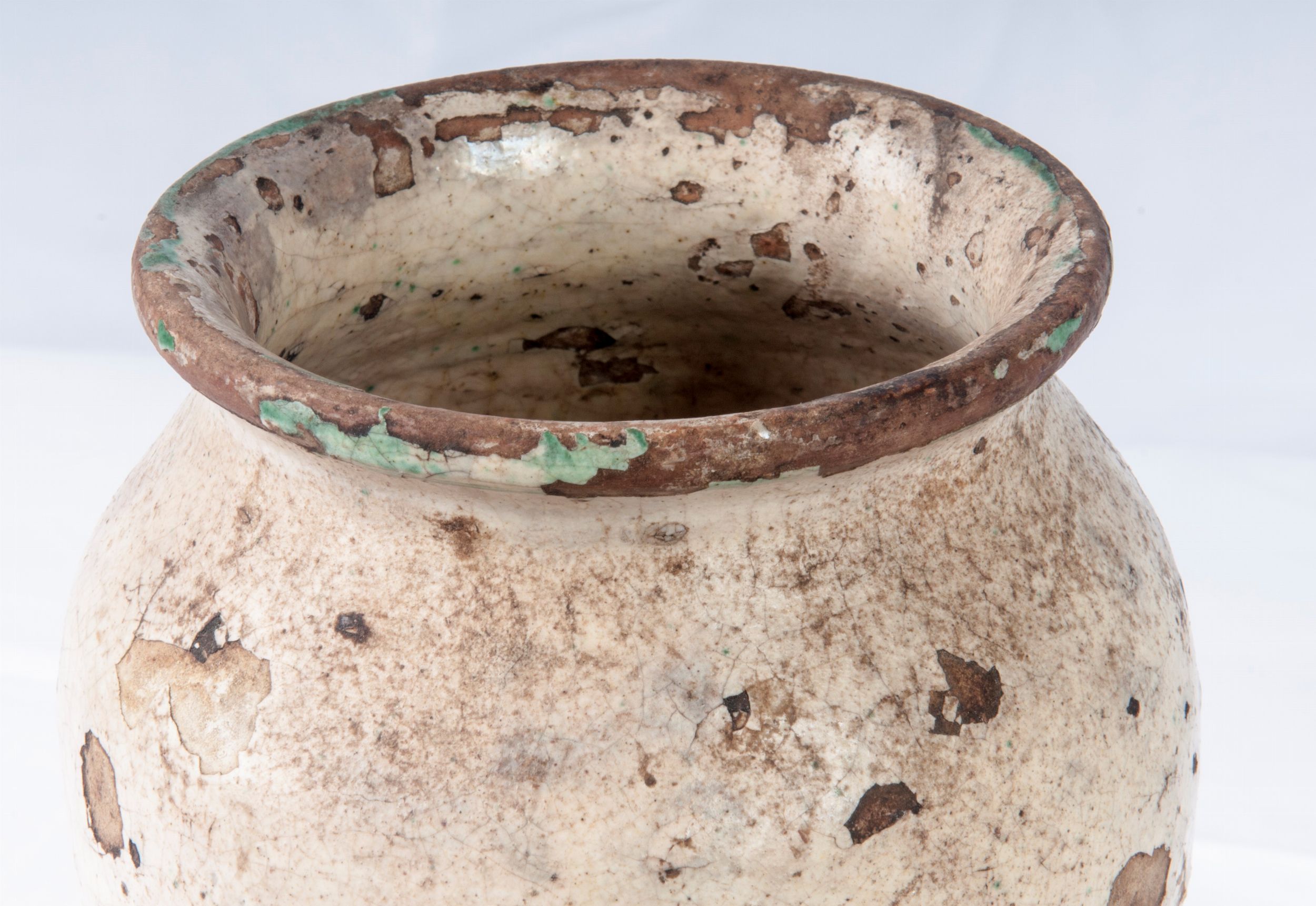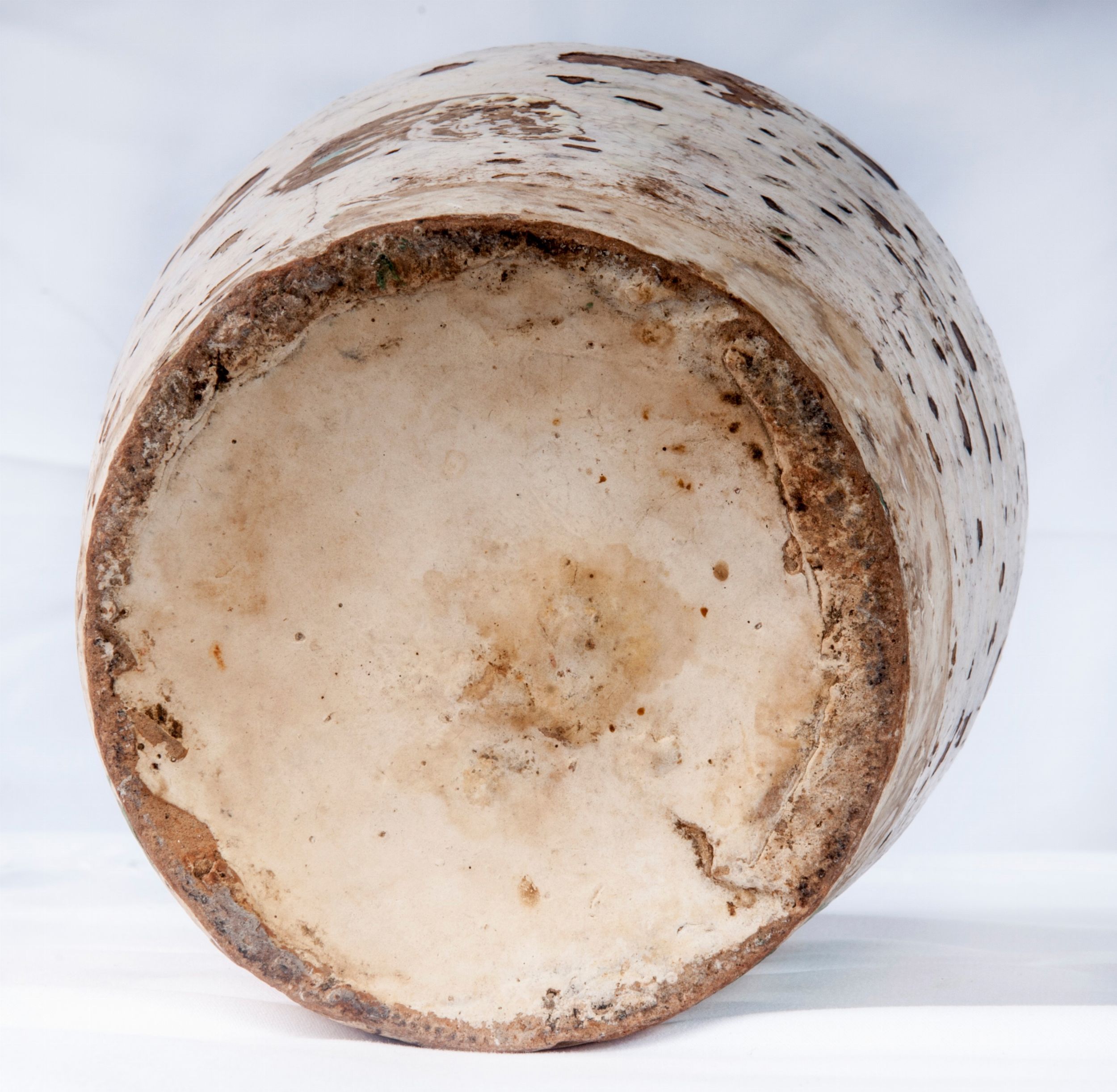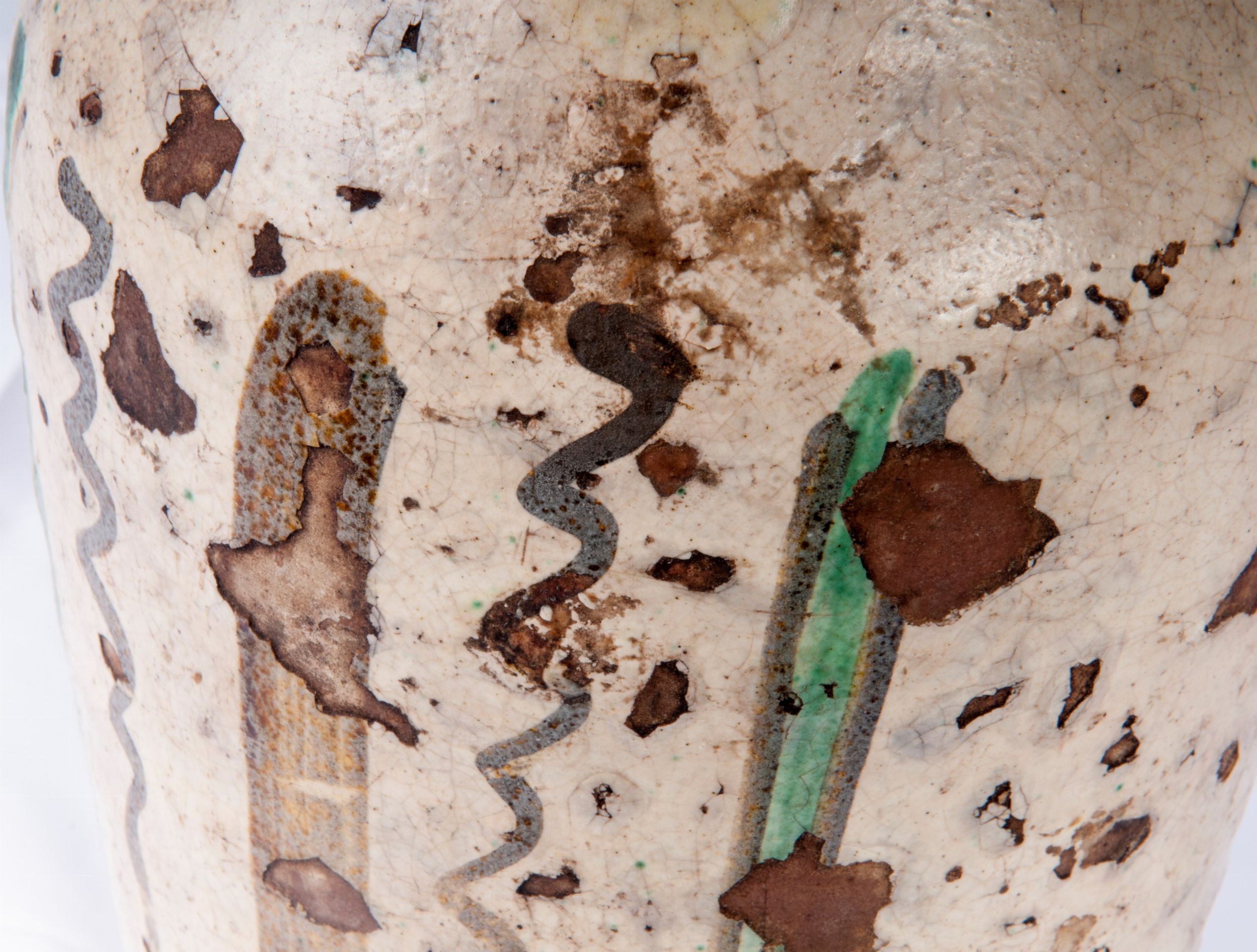 26 x 13 x 11,5 cm Campania, fine XIX secolo inizio XX secolo di forma a balaustro leggermente rastremato verso il basso. Decoro con con bande verticali in verde ramina e bruno di manganese. Stato di conservazione: molteplici punti di caduta nello smalto