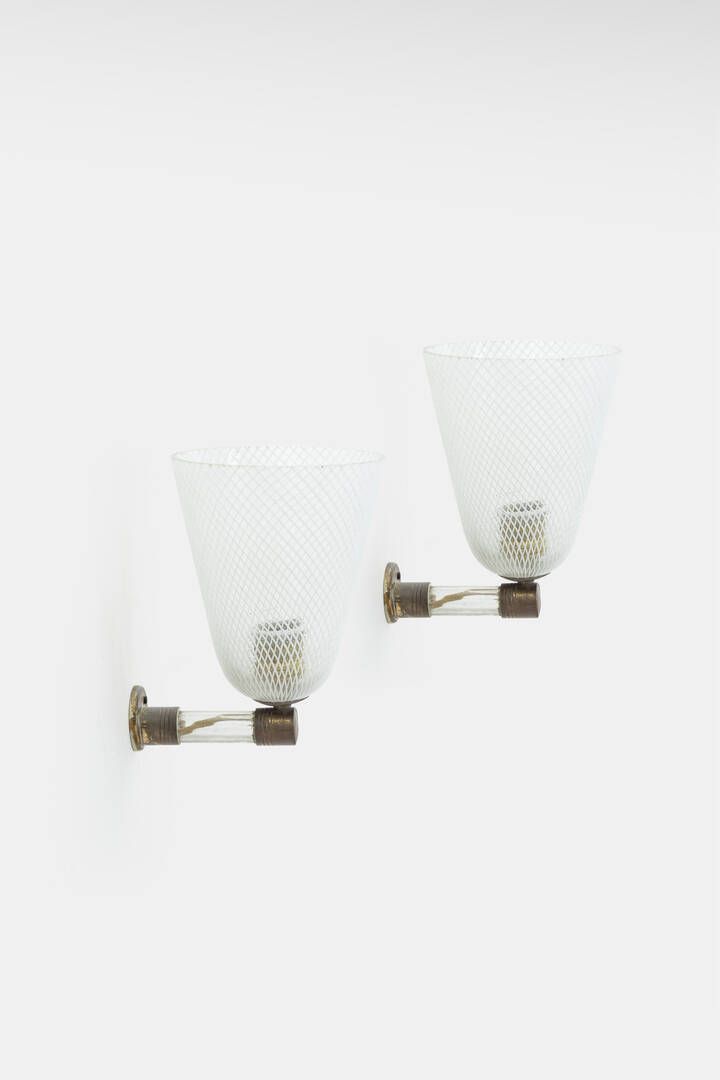 Struttura in ottone e diffusore in vetro. Anni '50 h cm 23x18 5