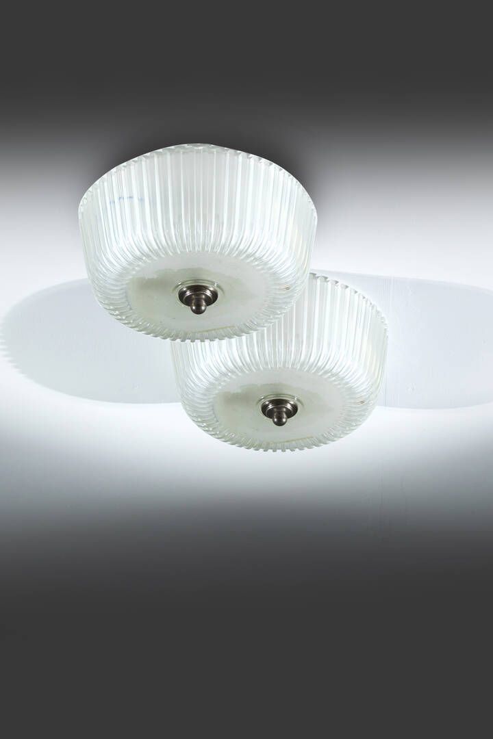Struttura in ottone e diffusore in vetro a coste. Anni '50 h cm 20x38