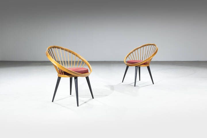 Struttura in legno bicolore seduta imbottita rivestita in tessuto. Anni '60 cm 72 5x65x57