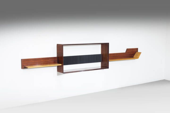 Struttura in legno legno impiallacciato e legno grissinato. Anni '50 cm 55x288x25