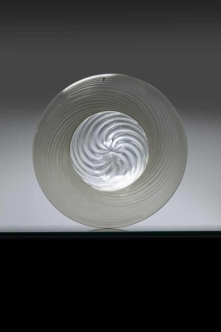 Vetro a incalmo con costolaure diagonali in cristallo. Firma incisa a punta Etichetta del produttore Prod. Venini 1979 cm 5 5x48x48 Bibl.: Franco Deboni (a cura di) I vetri Venini catalogo 1921/2007 Umberto Allamandi & C. 2007 vol. II tav. 307