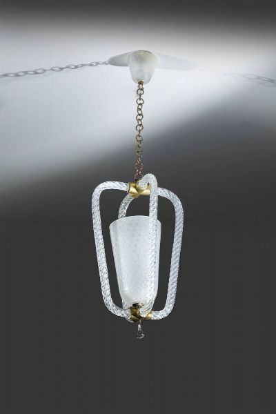 Struttura in ottone diffusore in vetro particolari in vetro lavorato a torchon e ottone. Anni '50 h cm 106x35