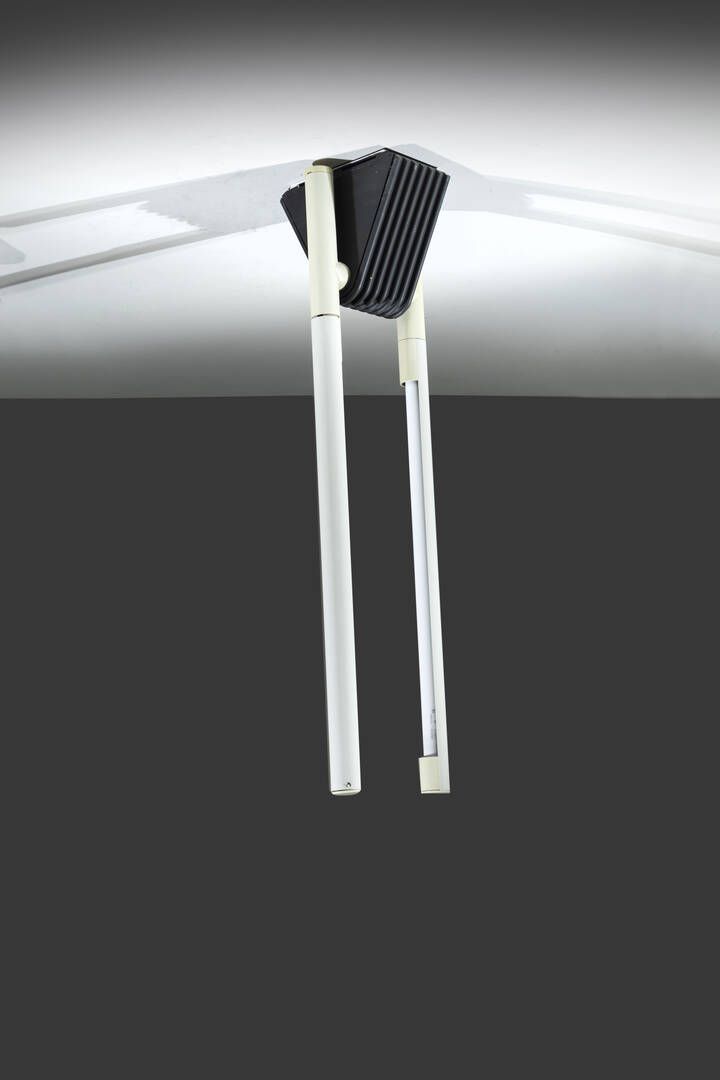 Struttura in metallo veniciato e materiale plastico. Doppio attacco a neon Anni '70 h cm 23x90x23