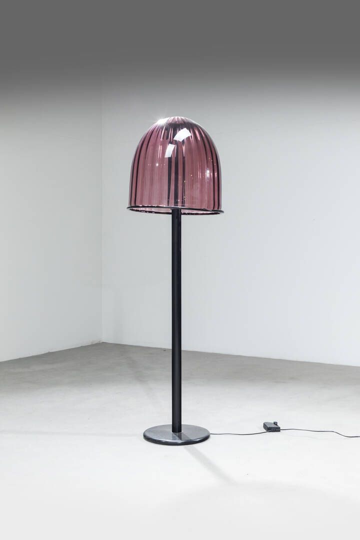 Struttura in metallo verniciato e diffusore in vetro colorato. Prod. Leucos 1975 h cm 167x50 Bibl.: Pagina pubblicitaria del catalogo Leucos