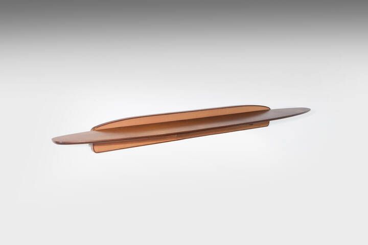 Struttura in legno e particolari in ottone. Anni '70 cm 15x195x27 5