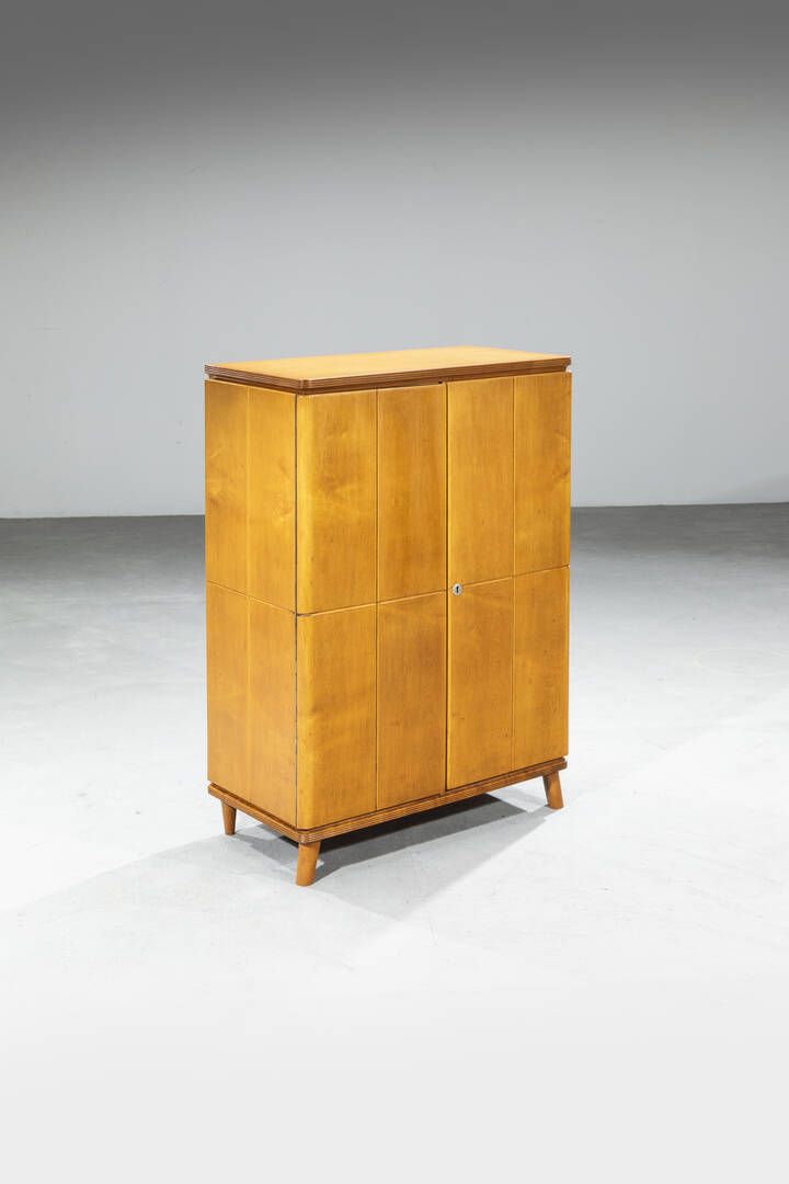 Struttura in legno ottone e vetro specchiato. Anni '50 cm 111 5x80x40