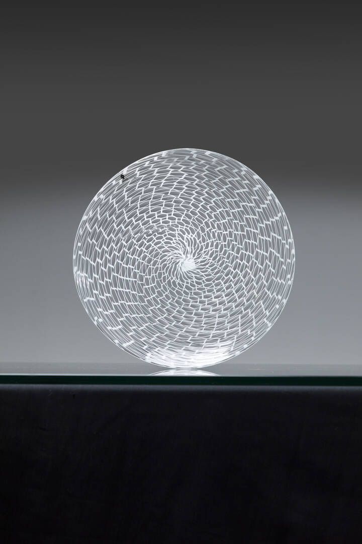 Vetro zanfirico reticello lattimo con canne incrociate. Firma incisa a punta ed etichetta del produttore Prod. Vanini 1980 cm 3x31 5 Bibl.: Marino Barovier e Carla Sonego (a cura di) Paolo Venini e la sua fornace Skira 2016 pag. 113