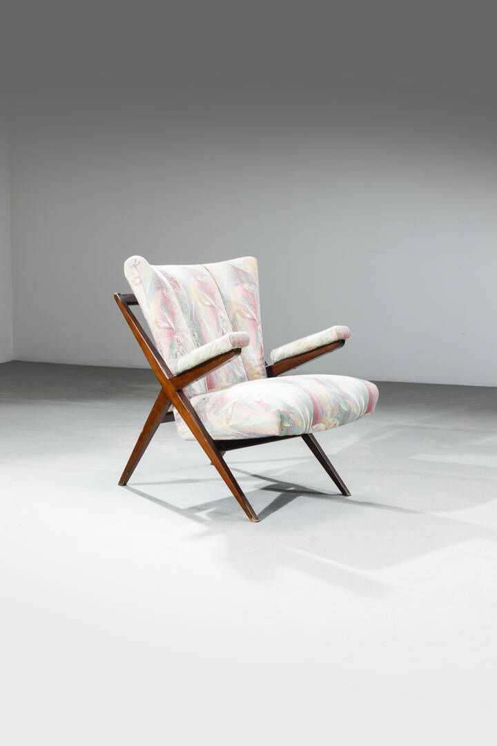 Struttura in legno imbottitura rivestita in tessuto. Prod. Cassina 1948 cm 88x64x90 Bibl.: Giuliana Gramigna Repertorio del design italiano 1950-2000 Torino 2003 vol. I pag. 18 Difetti