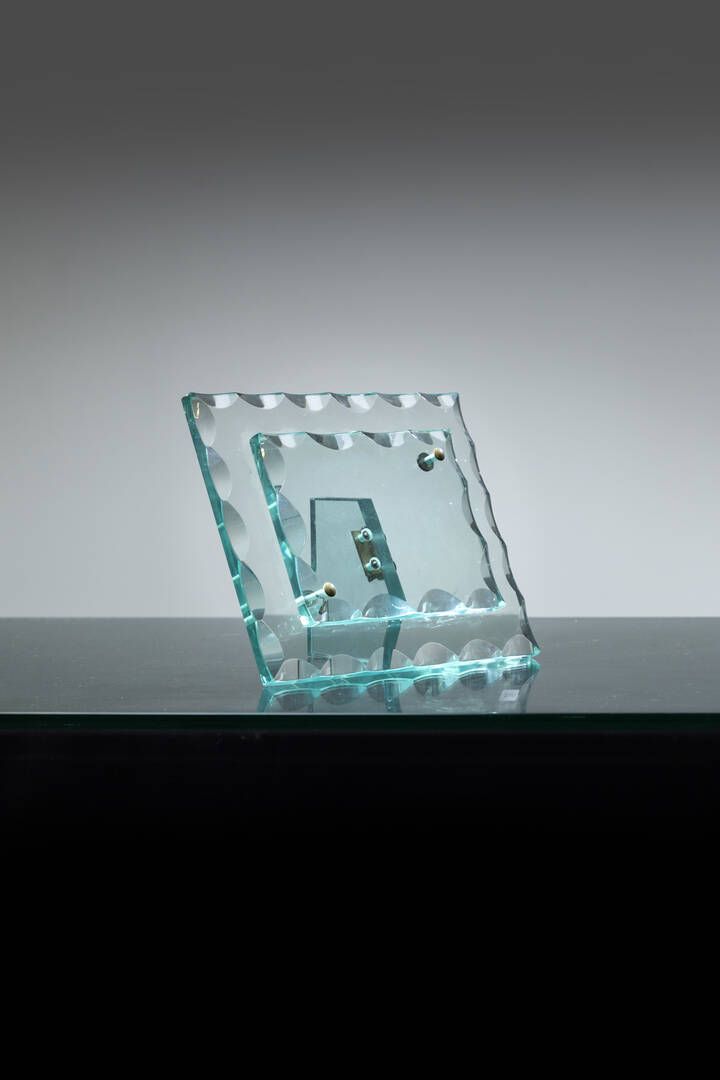 Vetro di forte spessore lavorato e particolari in ottone. Anni '70 cm 24 5x29