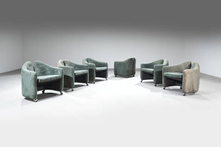 Struttura in legno imbottitura rivestita in tessuto. Etichetta del produttore Prod. Tecno anni '70 cm 67x68x58 Difetti