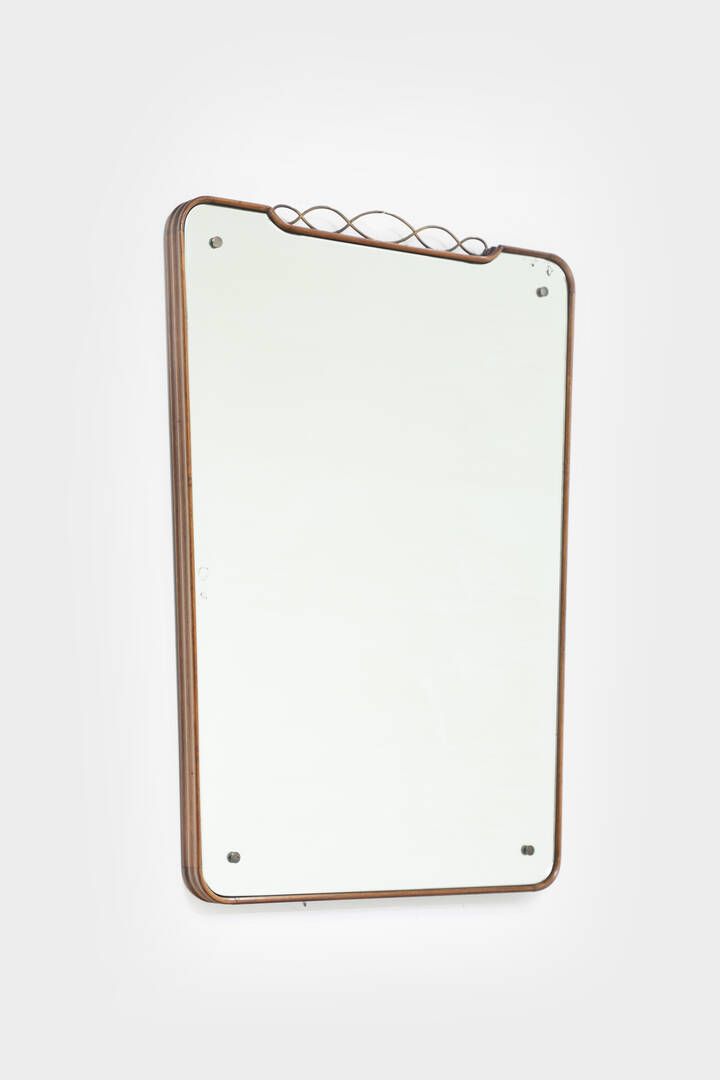 Cornice in legno vetro specchiato e particolari in ottone. Anni '50 cm 95x68 Difetti