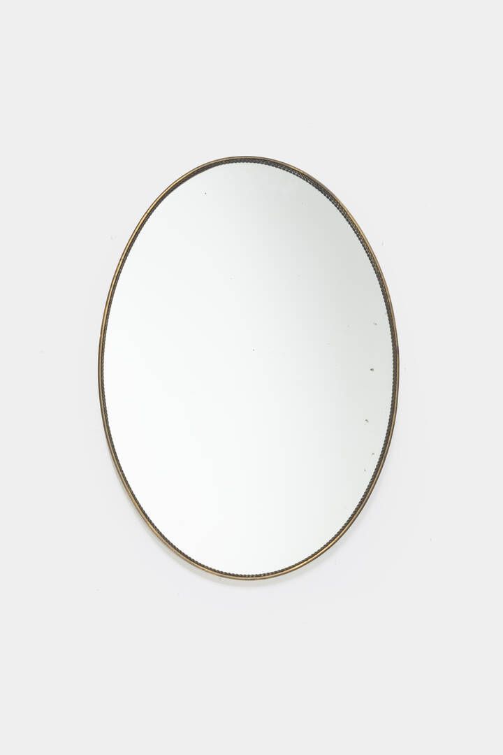 Bordo in ottone lavorato e vetro specchiato. Anni '50 cm 72x51 Difetti