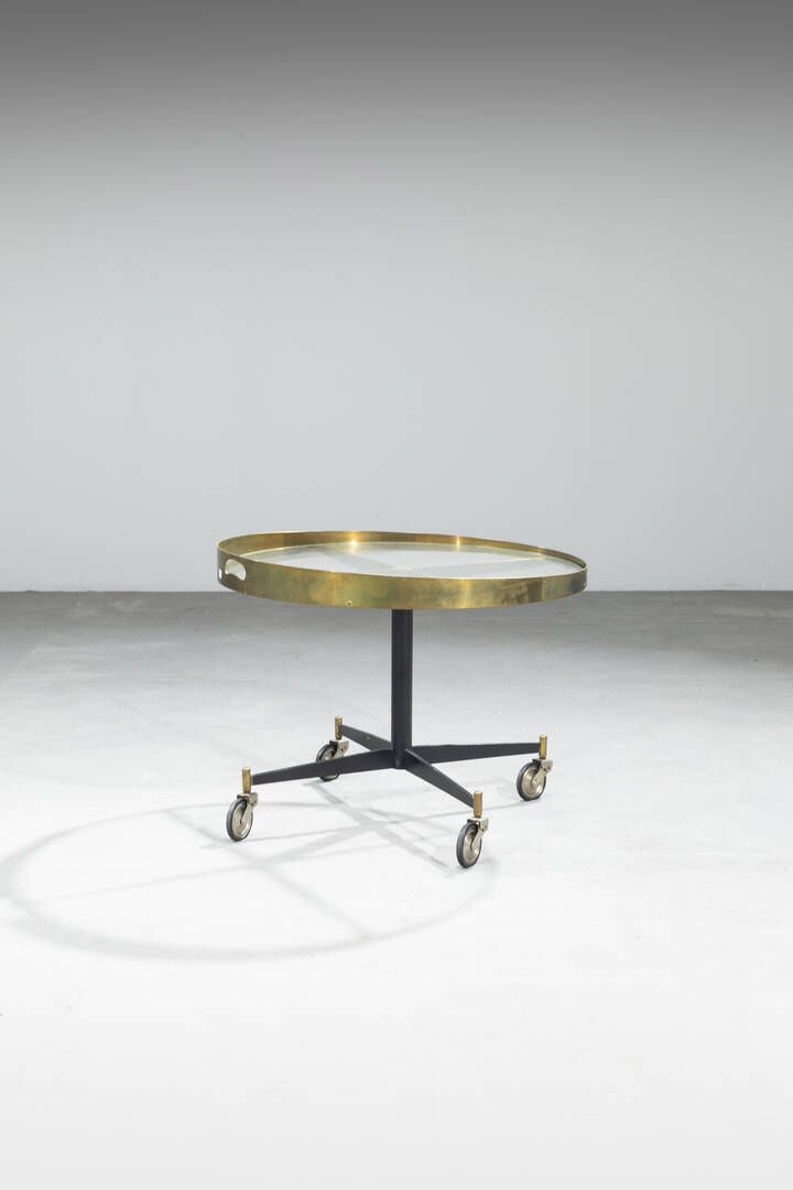 Struttura in metallo verniciato ottone e piano in vetro. Anni '50 cm 53 5x71x71 Difetti