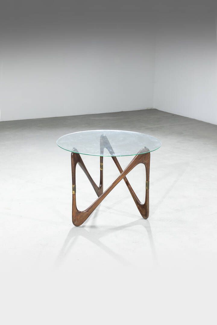 Struttura in legno piano in vetro e particolari in ottone. Anni '50 cm 52x72