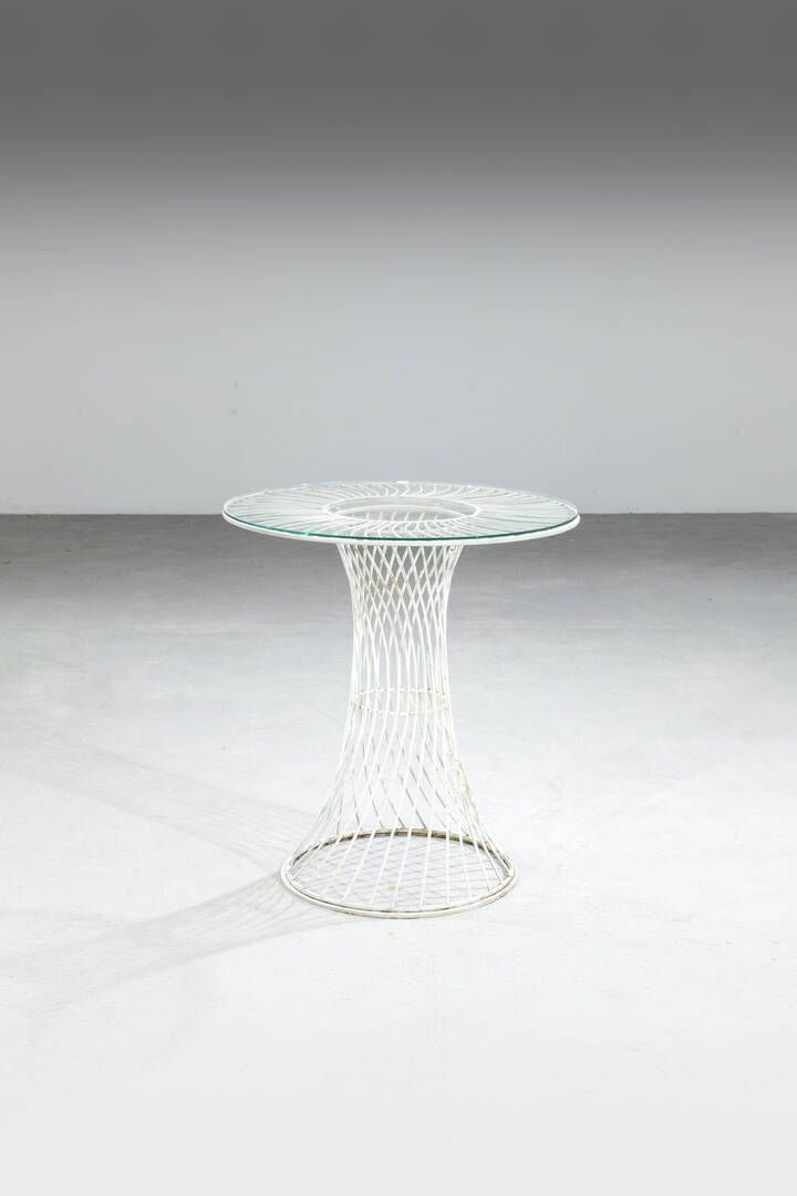 Struttura in metallo verniciato e piano in vetro. Anni '50 cm 66 5x60x60 Difetti