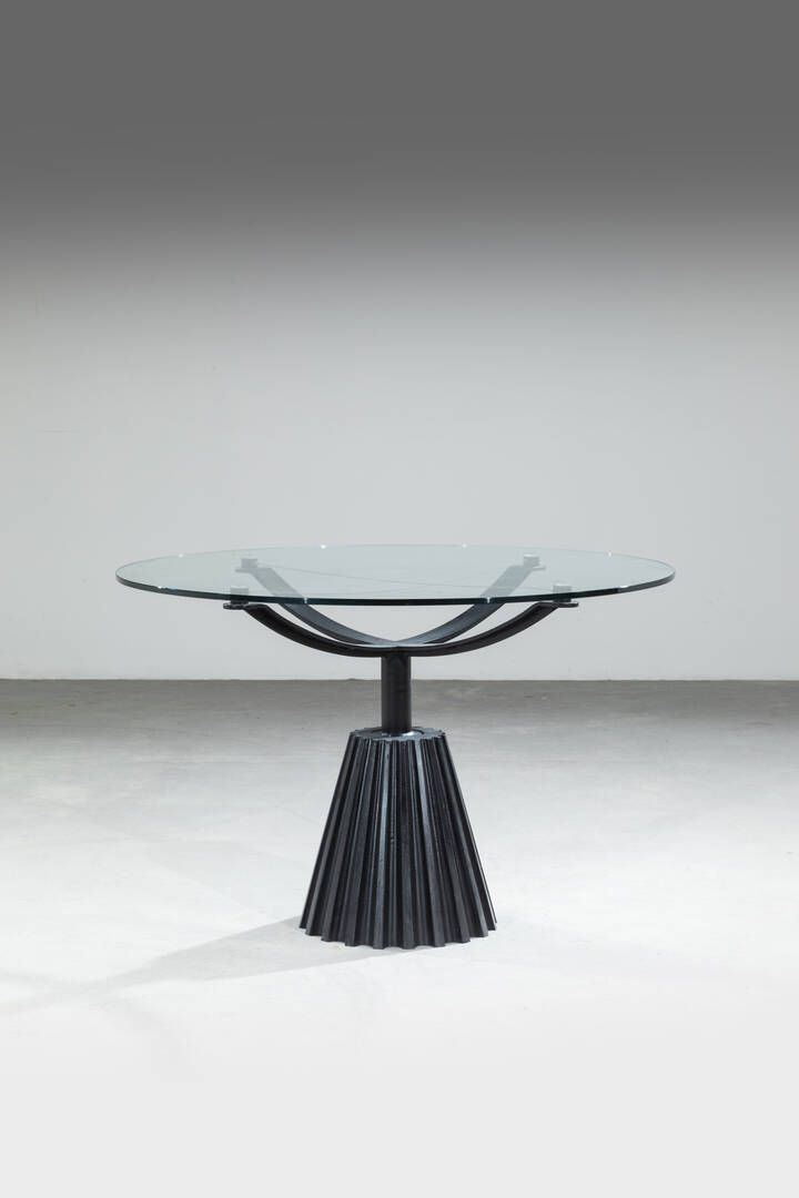 Struttura in ferro verniciato e piano in vetro di forte spessore. Anni '70 cm 71x110x110