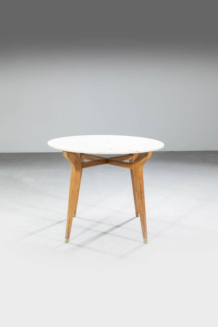 Struttura in legno piano in marmo e puntali in ottone. Anni '50 cm 77x99 5x99.5 Difetti e sbeccature del piano