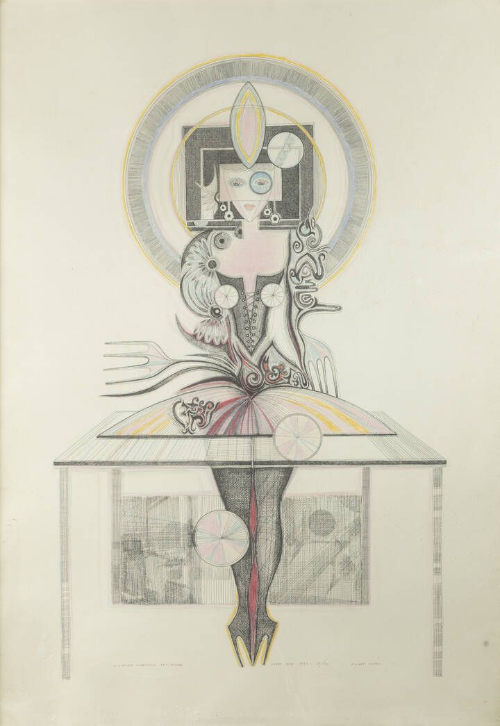 100x70 litografia ritoccata es. 17/50 Opera firmata datata e numerata in basso a destra e iscritta opera 510 - 1973 - 17/50 al centro verso destra e esemplare elaborato dall'autore a sinistra Difetti