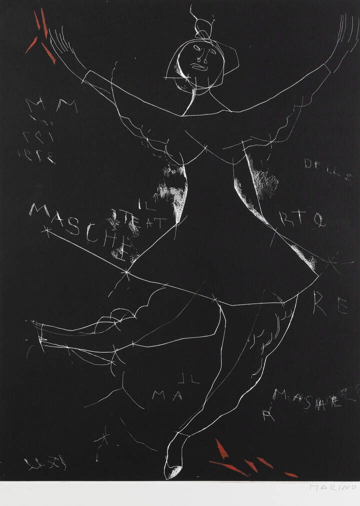 100x70 acquaforte e acquatinta a colori Opera firmata in basso a destra (a matita sul foglio) Pubblicata da Albra-Torino nel 1974 e facente parte della cartella Personaggi Stampata da Il Cigno Roma timbro a secco Bibl.:-Marino Marini: Catalogo ragionato dell'Opera grafica (Incisioni e Litografie) 1919-1980 Fondazione Marino Marini Edizioni Graphis Arte Livorno ripr. in b/n n. A172 p. 104