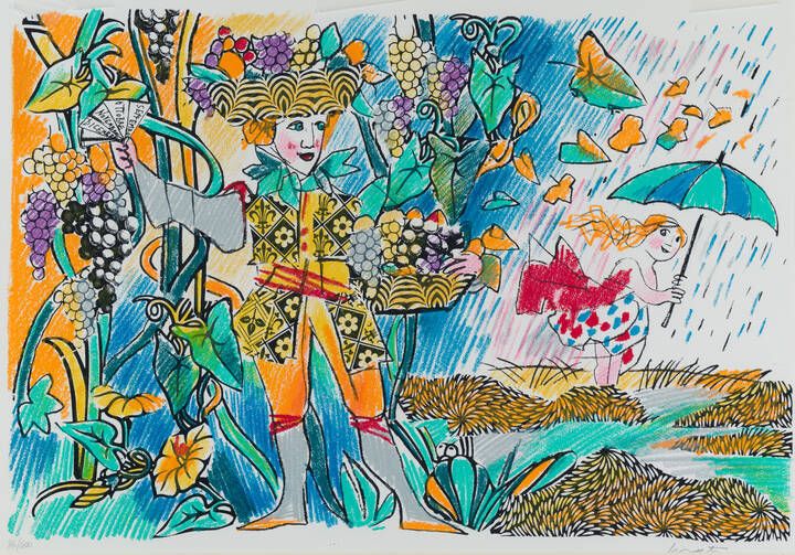 34 5x49 5 foglio 31 5x47 5 serigrafia es. 134/400 Opera firmata in basso a destra e numerata in basso a sinistra (a matita sul foglio) Serigrafia realizzata nei laboratori della ESSEDI EDIZIONI s.n.c. di Sandro Cortesogno