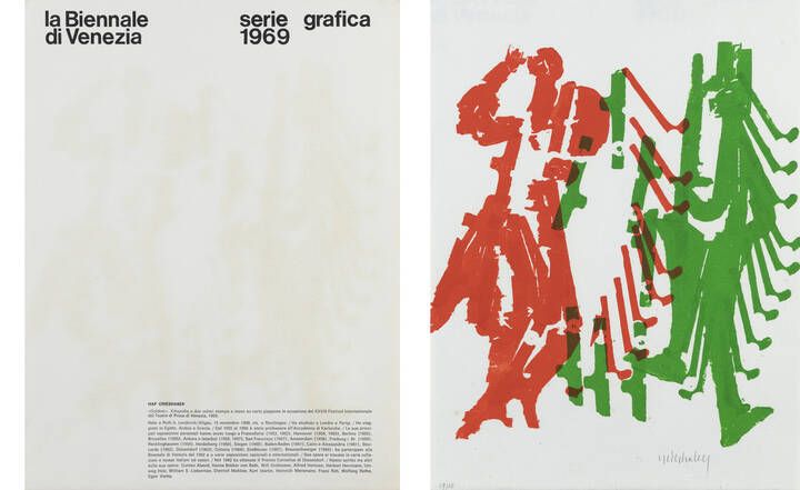 40x30 xilografia due colori es. 39/50 Opera firmata in basso a destra e numerata in a sinistra Timbro a secco La Biennale di Venezia 1969 Edizione stampata in occasione del XXVIII Festival Internazionale del teatro di Prosa di Venezia 1969