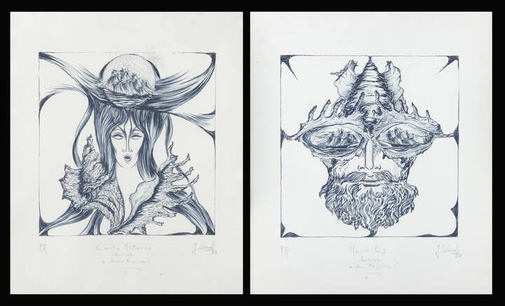 Lotto composto da due litografie: A) Canto notturno 1976 B) Nautilus 1976