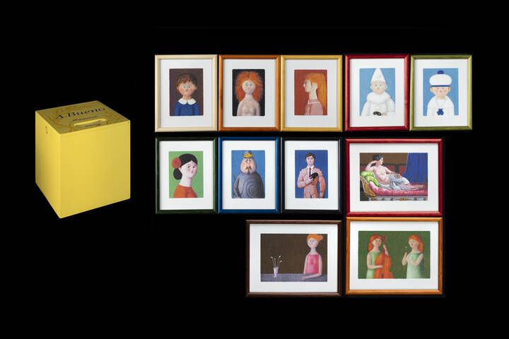undici litografie di misure varie prova d'artista Ogni litografia è montata su cornice in lacca trasparente colorata e posta all'interno di una scatola in legno laccato antigraffio serigrafato a quattro colori Stamperia Carini di San Giovanni Valdarno Edizioni Studio R.G.B.