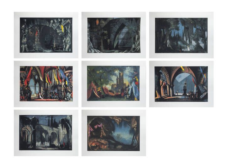 Scene di corte-lotto di otto litografie