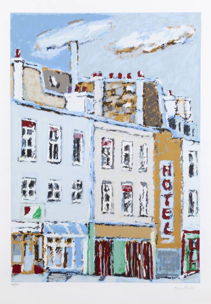 70x50 foglio 60x42 serigrafia es. 136/150 Opera firmata in basso a destra e numerata in basso a sinistra (a matita sul foglio) Editore I Maestri dell'Arte di Orta S. Giulio (NO) gennaio febbraio marzo 1988 (autentica su fotocopia dell'artista)