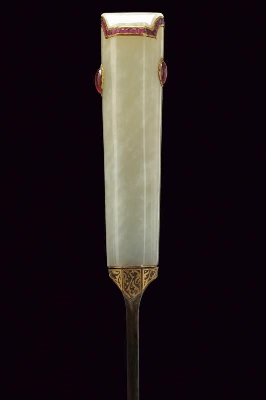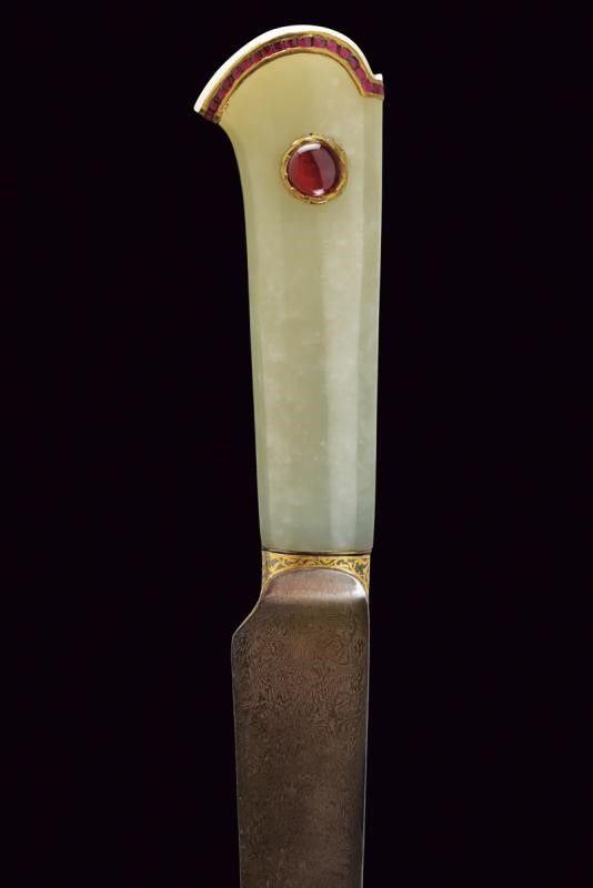 Bellissimo kard con impugnatura in giada decorata con rubini