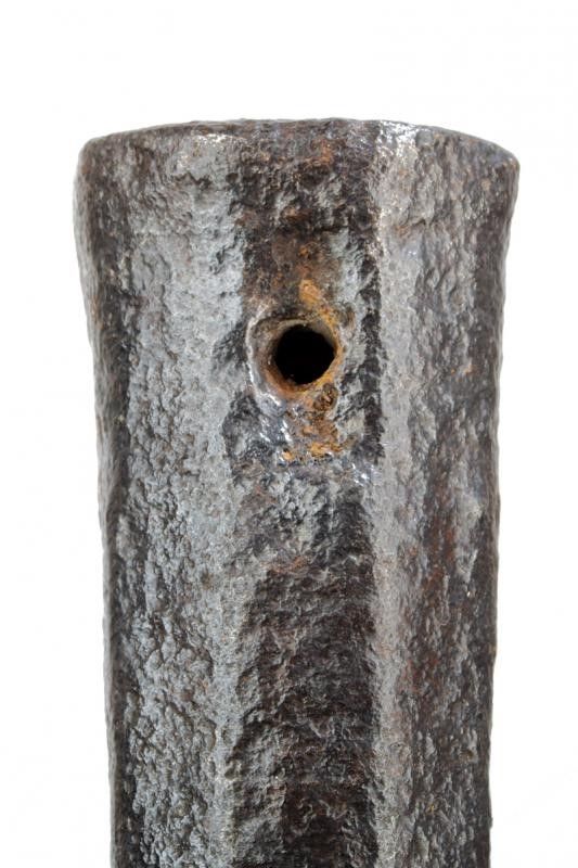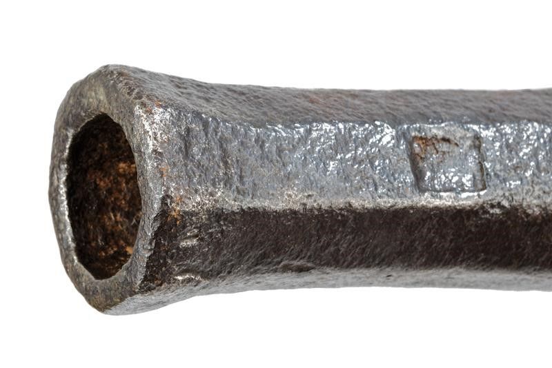 XV Sec. Robusta canna in ferro di struttura ottagonale, leggermente allargata alle estremità, la base munita di focone; resti di un'apertura per ospitare un rampone, il quale era fissato ad un'asta in legno.