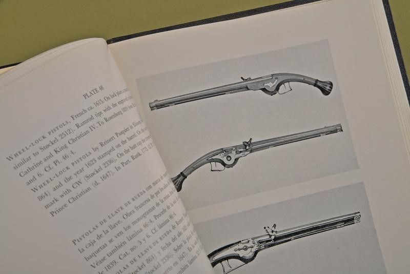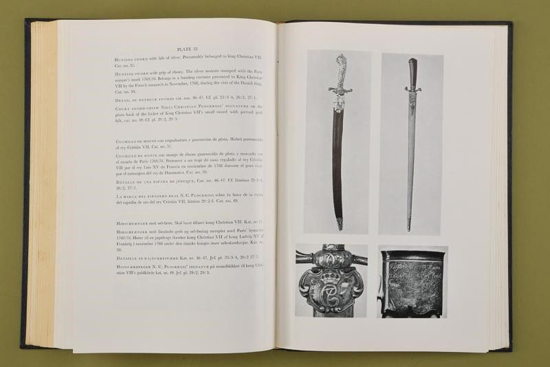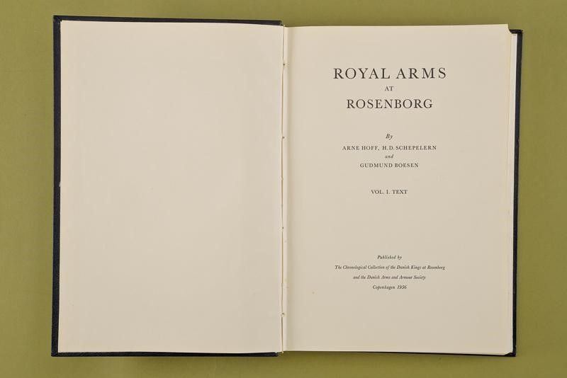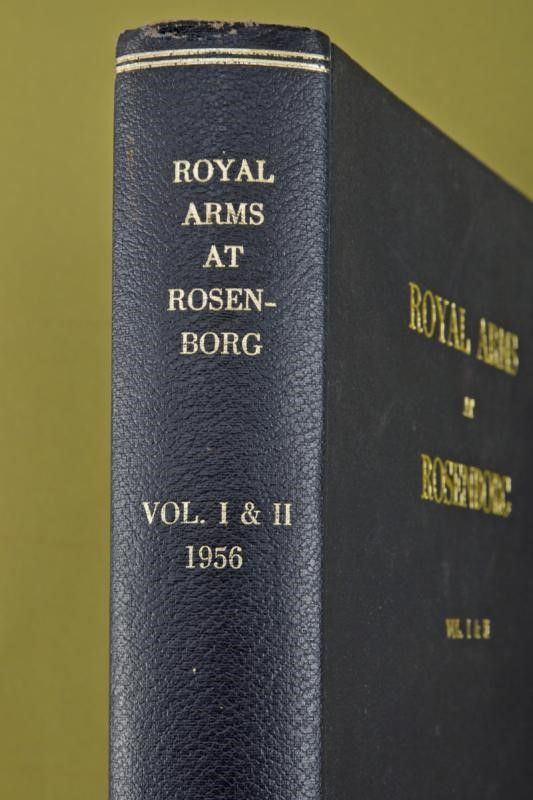 Copenaghen, altezza 30.5 cm. 1956 'Royal Arms at Rosenborg', Vol. I e Vol. II, Chronological Collection of the Danish King at Rosenborg and the Danish Arms and Armour Society, Copenhagen 1956. Interessante opera in due volumi. Il primo volume con testo in inglese, 222 pagine numerate, con descrizione dei pezzi della collezione. Il secondo volume con foto in b/n e didascalie trilingue (inglese, spagnolo, danese). Copertina rigida in similpelle con impressioni dorate.