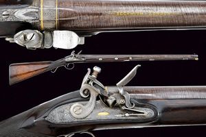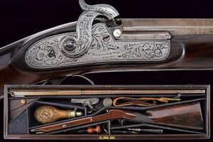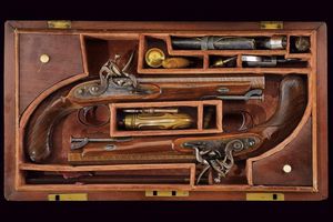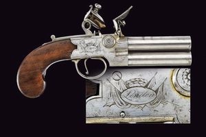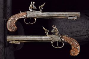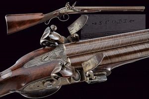 Londra, lunghezza 43 cm. Metà del XIX Secolo Canne ottagonali, lisce, brunite, con cornice in argento alla culatta [..]