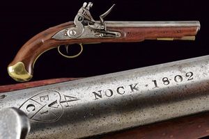 Inghilterra, lunghezza 39.5 cm. 1802 Canna liscia tonda con anello alla base, vari punzoni, 'NOCK 1802' e cuore [..]