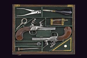 Paio di pistole a pietra focaia da viaggio di G. Finochio