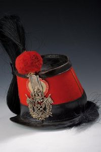 Regno d'Italia, altezza 14 cm. 1875 circa Del primo tipo, con doppia visiera. Corpo rivestito in feltro nero con [..]