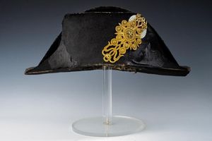Italia, altezza hat circa 13 cm. 1860 circa Coppo rigido rivestito di panno cremisi (fori di tarme) con imperiale [..]