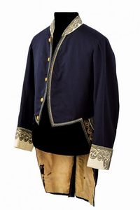 Regno di Sardegna, altezza 100 cm. Prima metà del XIX Secolo Marsina da diplomatico, in tessuto blu con colletto, [..]