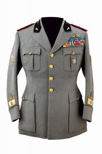 Regno d'Italia, altezza 78 cm. 1940 circa In tessuto grigioverde, con mostrine e profilature nere, completa di [..]