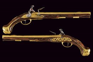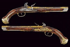 Boemia, lunghezza 45 cm. fine del XVIII Sec. Canne lisce, tonde, con base ottagonale, le culatte munite di tre [..]