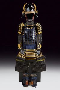 Giappone, altezza as shown circa 155 cm. Periodo Edo (1603-1867) Shiinomi-nari (conoide) Kabuto, in ferro laccato [..]