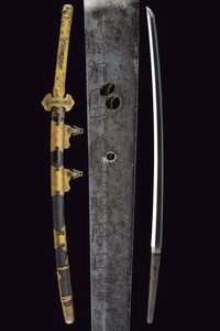Giappone, lunghezza 105 cm. Periodo Edo (1603-1867) Lama (Nagasa 71 cm) Hirazukuri Iori Mune; Hada: Itame Mokume; [..]