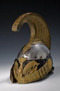 Regno di Sardegna, altezza 31 cm. secondo quarto del XIX Sec. Coppo in ferro con turbante in crine nero (alcune [..]