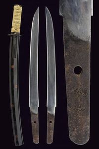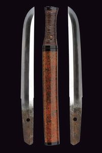Giappone, lunghezza 36.4 cm. Periodo Edo (1603-1867) Lama (Nagasa di 22.3 cm) con hamon e hada non visibili; habaki [..]