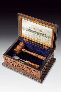 Inghilterra, dimensioni case 35,5 x 15 x 15,5 cm. 1882 Riccamente lavorata ad intaglio, in legno. Il coperchio [..]