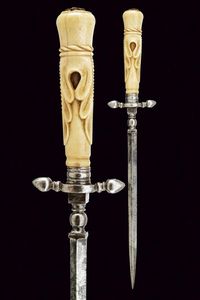 Italia, lunghezza 24.5 cm. XVII Secolo Sottile lama dritta di sezione romboidale, con breve tallone. Impugnatura [..]